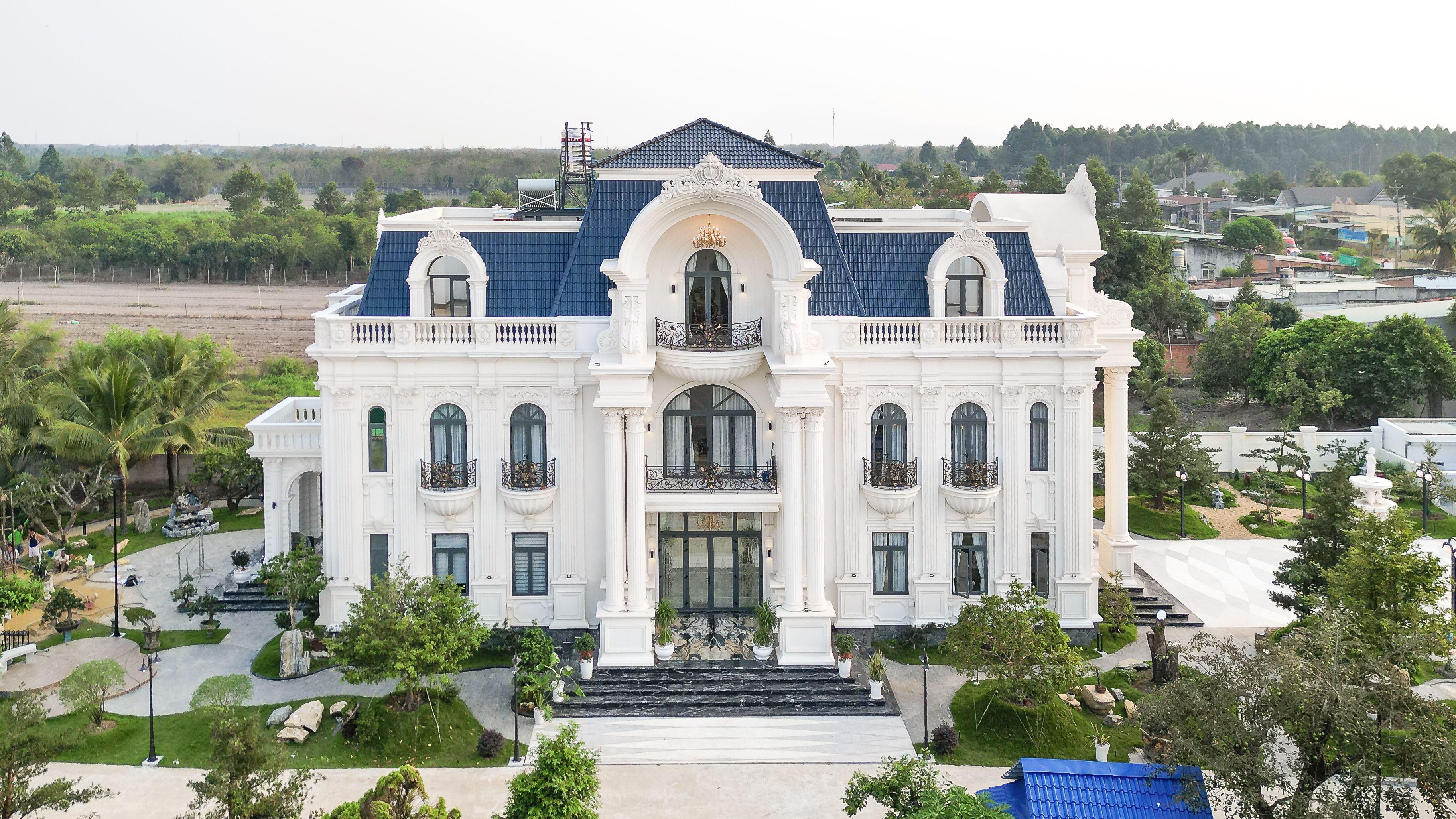 Công trình biệt thự 2 tầng mang phong cách cổ điển sang trọng là sự kết hợp hoàn hảo giữa nghệ thuật kiến trúc châu Âu và kỹ thuật thi công tinh xảo. Tổng thể công trình gây ấn tượng mạnh với hệ thức cột đồ sộ, bố cục đối xứng chuẩn mực cùng những chi tiết phào chỉ đắp nổi cầu kỳ, thể hiện đẳng cấp và gu thẩm mỹ tinh tế của gia chủ.