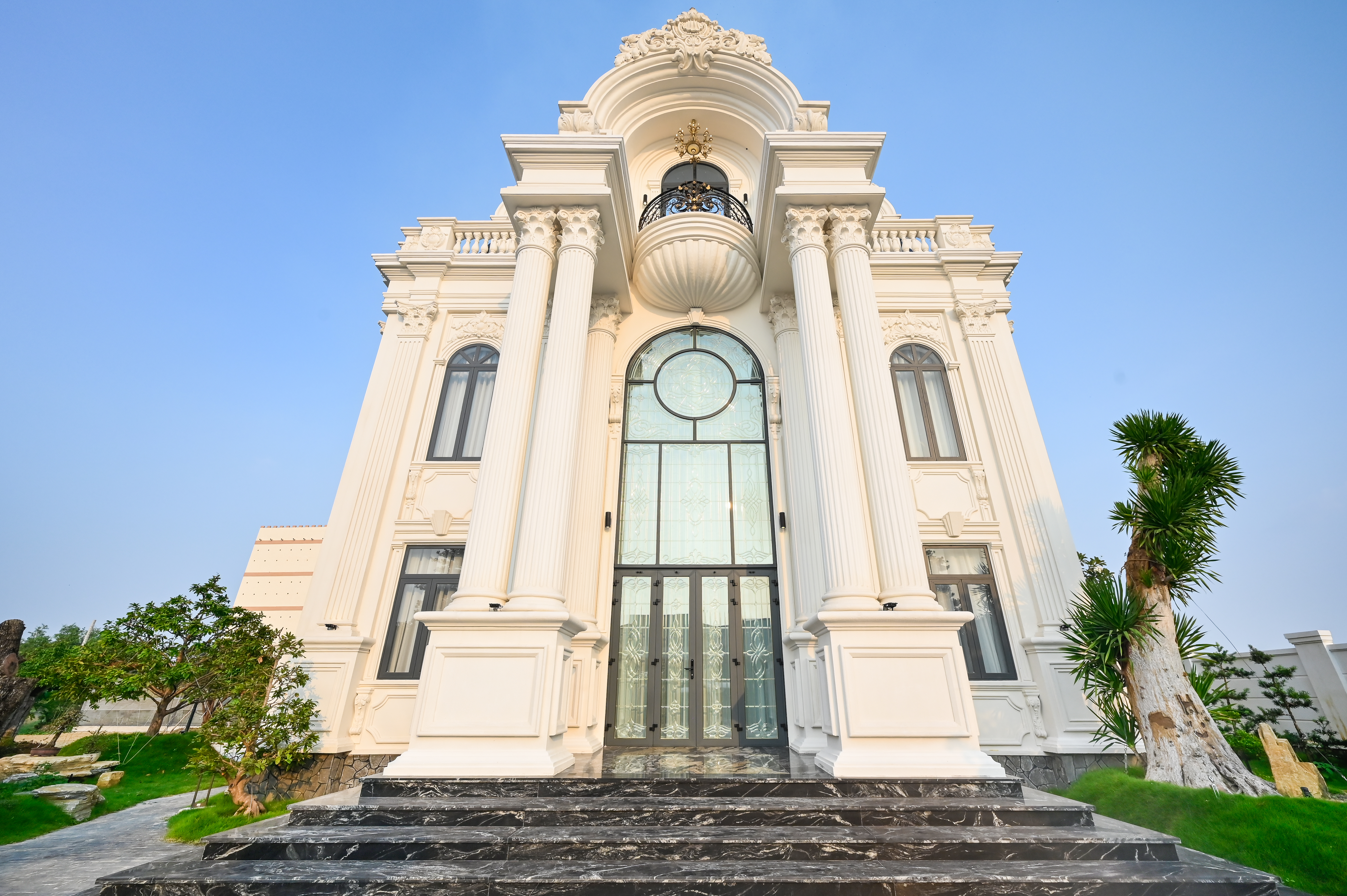 Không chỉ đóng vai trò chịu lực, hệ cột còn là yếu tố thẩm mỹ chủ đạo, giúp công trình toát lên vẻ quyền quý chuẩn kiến trúc châu Âu cổ điển.