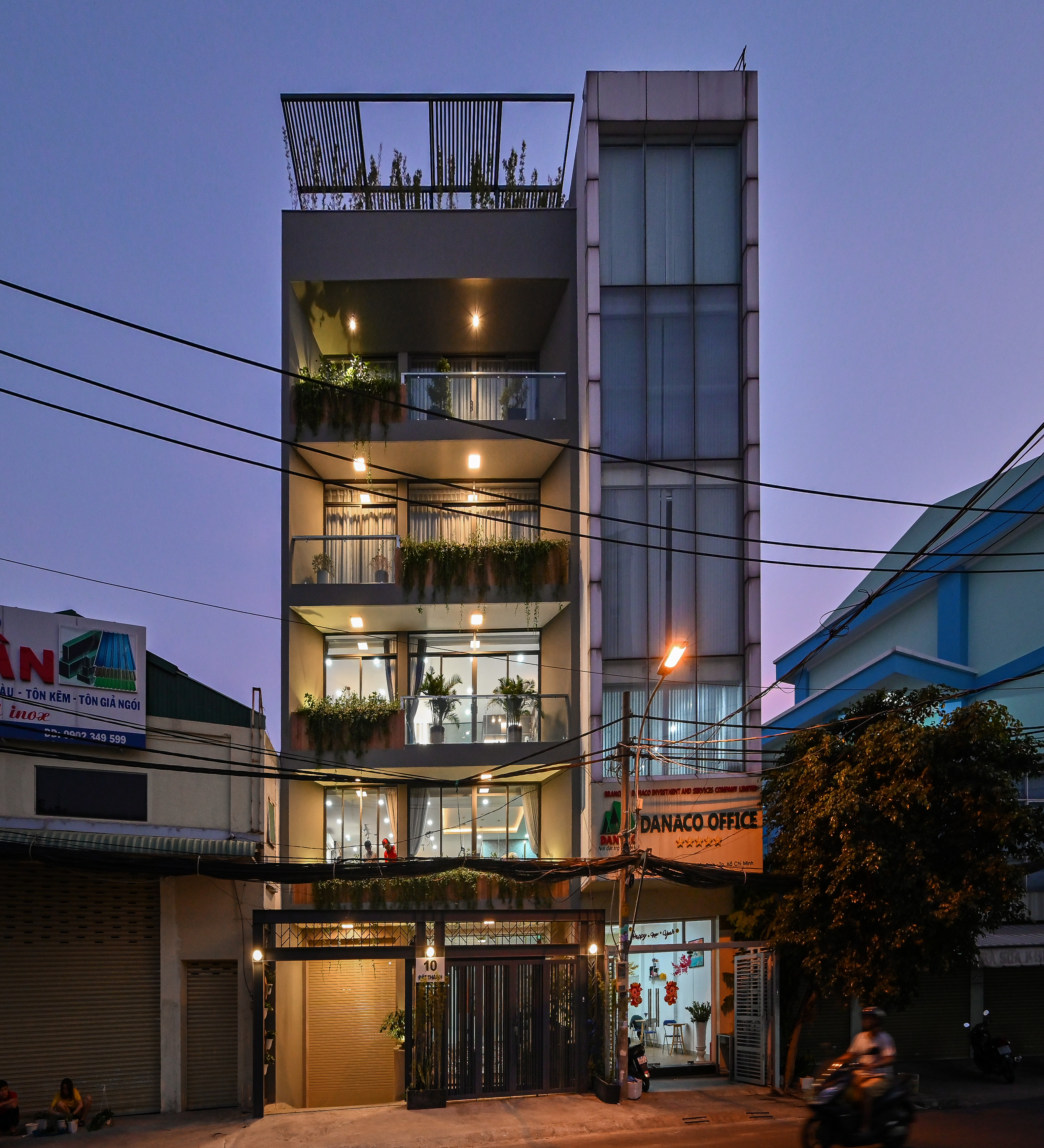 Điểm nhấn ấn tượng nằm ở những mảng xanh đan xen trên từng tầng – nơi cây cối được sắp đặt khéo léo để mang hơi thở thiên nhiên len vào không gian sống.